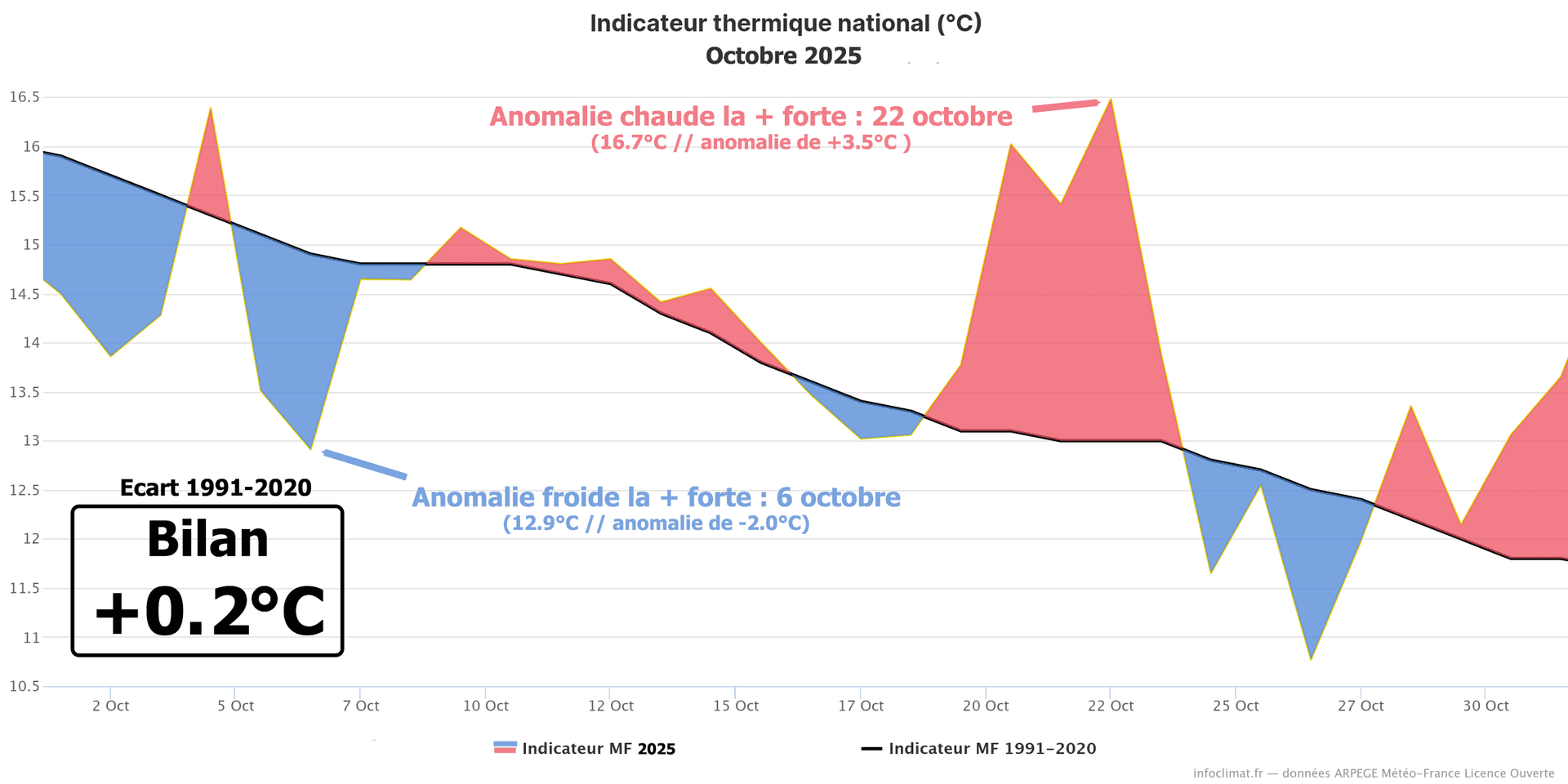 Indicateur thermique national pour octobre 2025 depuis l'après-guerre (1946) - Infoclimat