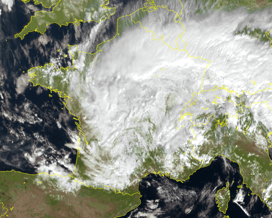 Outre la grisaille et l'humidité, la fraîcheur est également marquante. Les températures qui concernent actuellement la France se situent très largement en dessous des normales de saison. Durant l'après-midi du mardi 23 septembre 2025, le déficit atteignait souvent -7 à -10°C du sud-ouest au nord-est de la France ! À Limoges, la température maximale a plafonné à 8,9°C mardi après-midi, une valeur plus de 10°C sous les moyennes de saison ! Une telle anomalie fraîche devient rare à l'ère du réchauffement climatique.