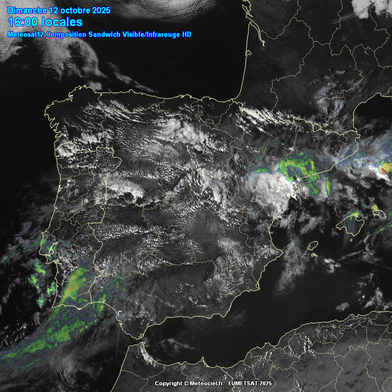 Animation satellite sur l'Espagne en fin de journée du 12 octobre 2025 – EUMETSAT
