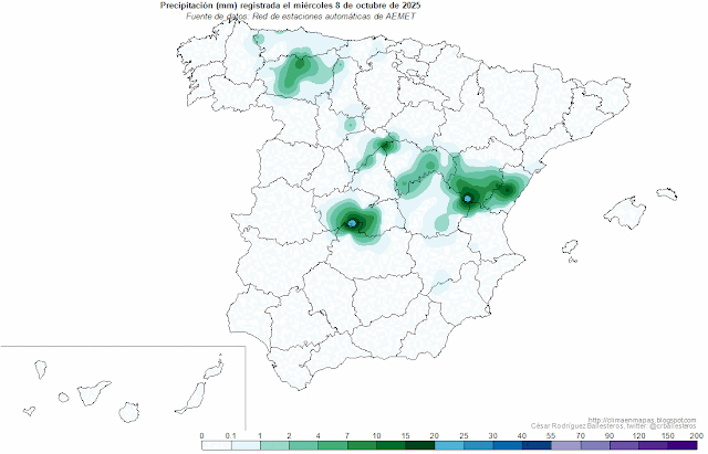 Animation des cumuls de précipitations sur l'Espagne entre le 8 et le 11 octobre 2025 – climaenmapas