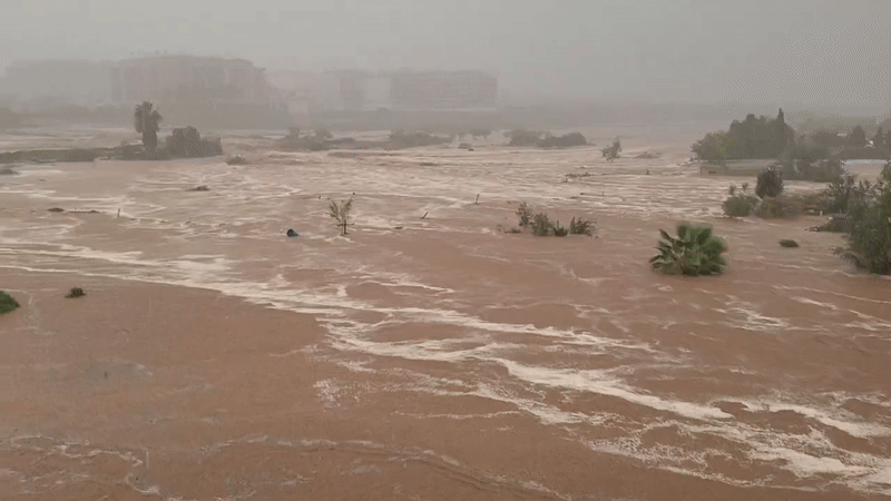 La Rapita complètement inondée en fin de journée du 12 octobre 2025 – Via X : Lour_1974