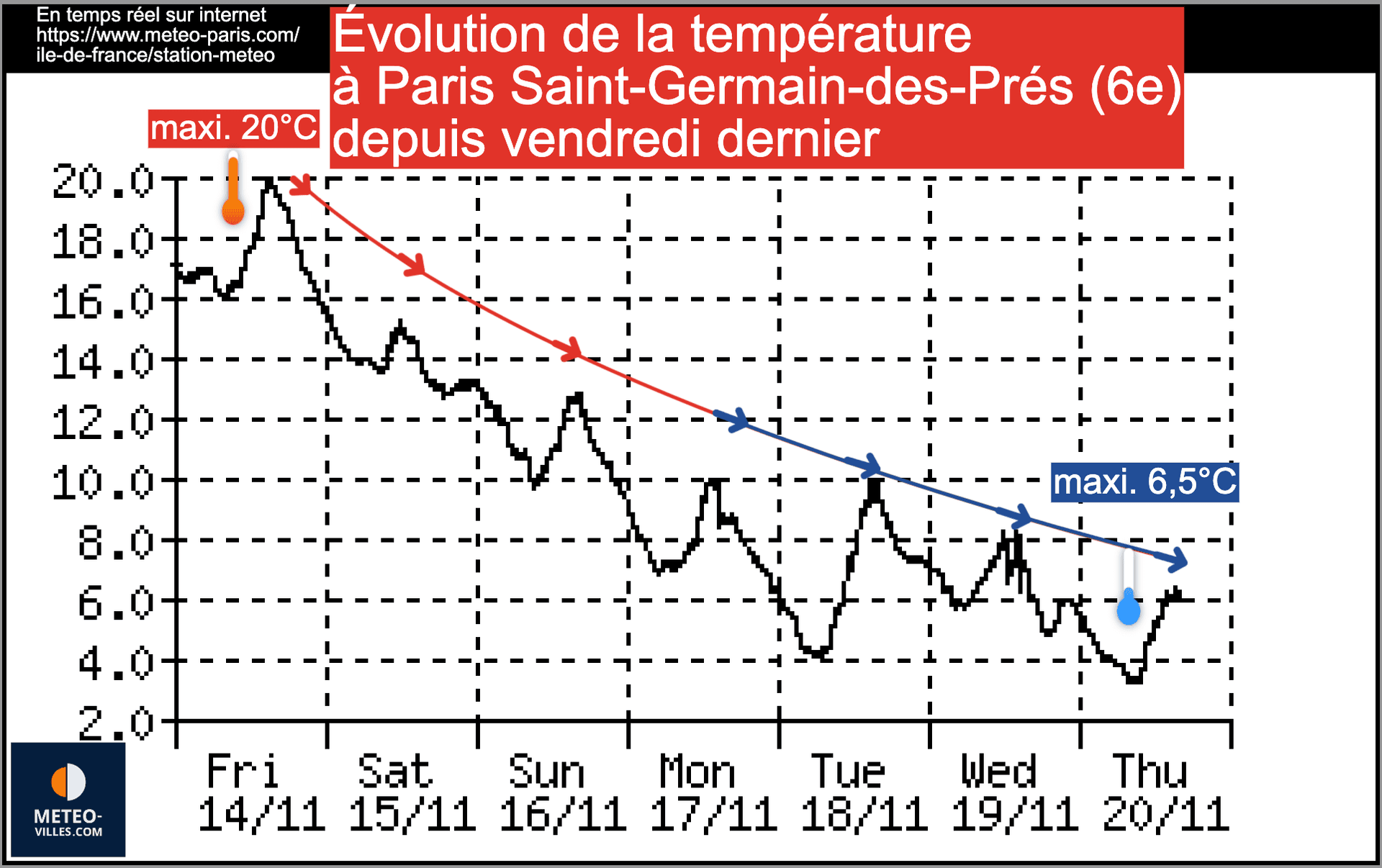 Évolution des températures à Paris entre le 14 et le 20 novembre 2025 – Météo-Villes