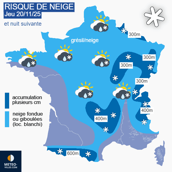 Risque de neige et/ou giboulées ce jeudi 20 novembre 2025 et la nuit suivante - Météo Villes